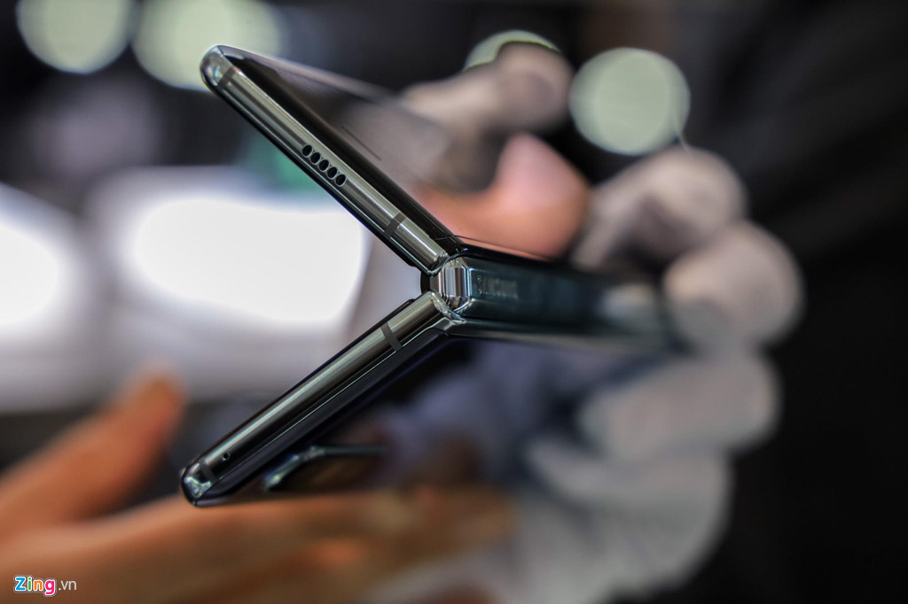 Cầm trên tay khi đang gập lại, Galaxy Fold cho cảm giác như một chiếc điện thoại dạng thanh trước kia, với kiểu dáng rất dài và thân máy khá dày. Máy trở nên gọn gàng, dễ cầm hơn phần lớn smartphone hiện nay khi gập lại.